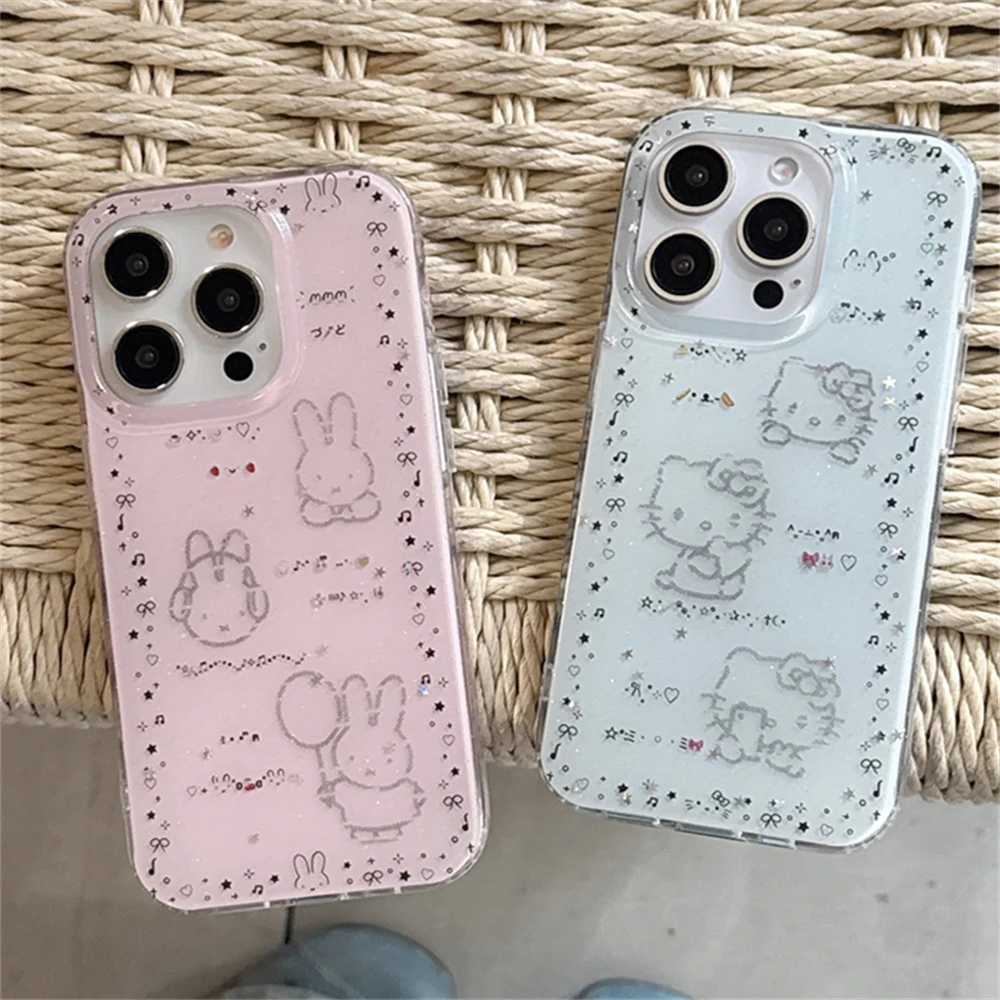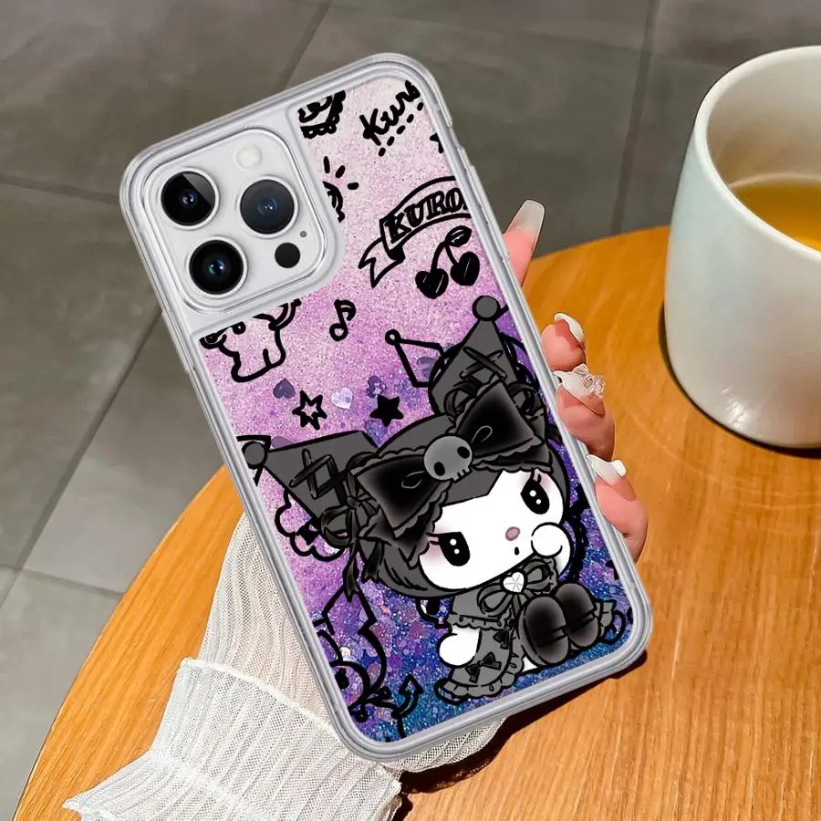 Luxury Bling Soft Phone Cover Case for Apple iPhone 16 Pro Max 15 Plus 11 16+ 15+ 12 13 14 16e 15Pro Sanrio Cute Kuromi