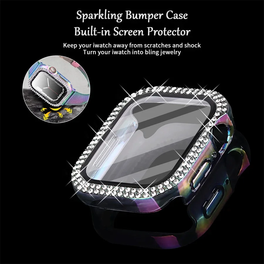 Diamond Cover For Apple watch Case 45mm 41mm 44mm 40mm Tempered Glass+Bling Bumper Screen Protector iWatch series 9 8 7 6 5 4 SE  Read more
