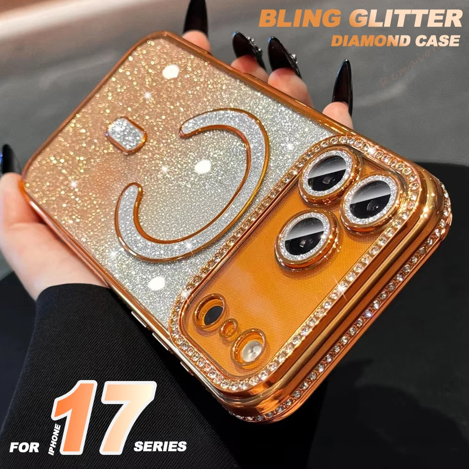 Bling Bling Glitter Diamond Magnetic Case For iPhone 17 Air 16E 16 15 14 Plus 13 11 12 16 17 Pro Max Magsafe Protector Cover
