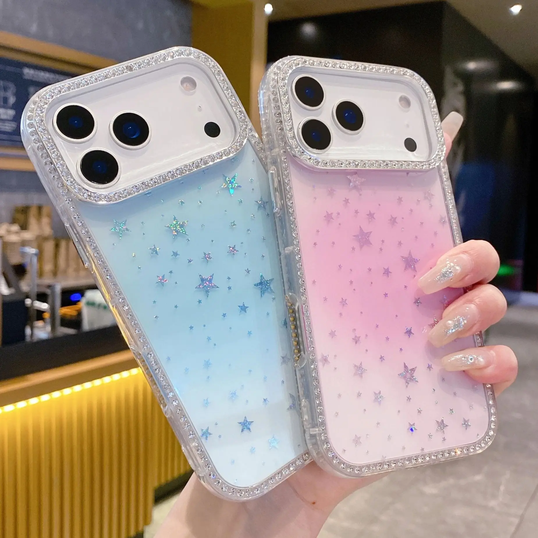 Shining Diamond Gradient Star Sequin Case For IPhone 17 16 16E 15 14 13 12 11 Pro Max Plus Rhinestone Transparent Glitter Cover
