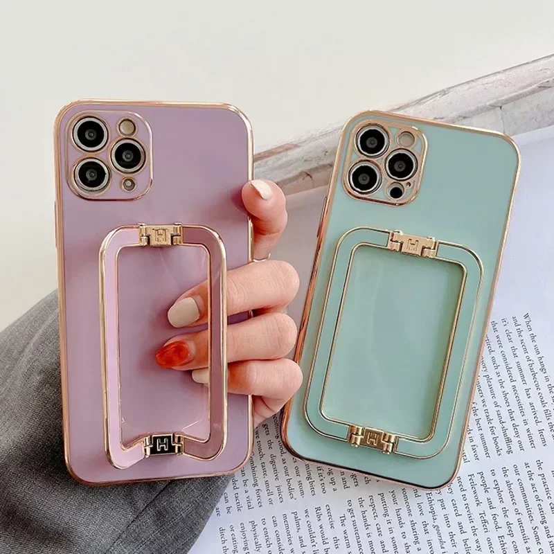 Gold Plating Phone Case, Korea Metal Square Holder, For Samsung S23, S24, S21, S22 Plus, Ultra , For iphone 15, 14 16 Pro max
