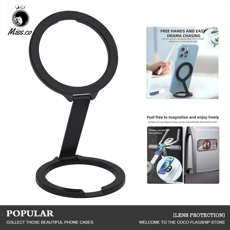 Double-Sided Magnetic Phone Holder Aluminium Foldable Phone Ring Stand For MagSafe iPhone 16 15 14 13 Pro Max Huawei Samsung