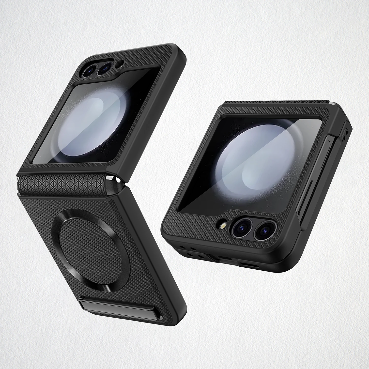 Magnetic Kickstand for Magsafe Phone Case for Samsung Galaxy Z Flip 6 5 Flip6 Flip5 5G Hinge Protection Glass Film Leather Cover