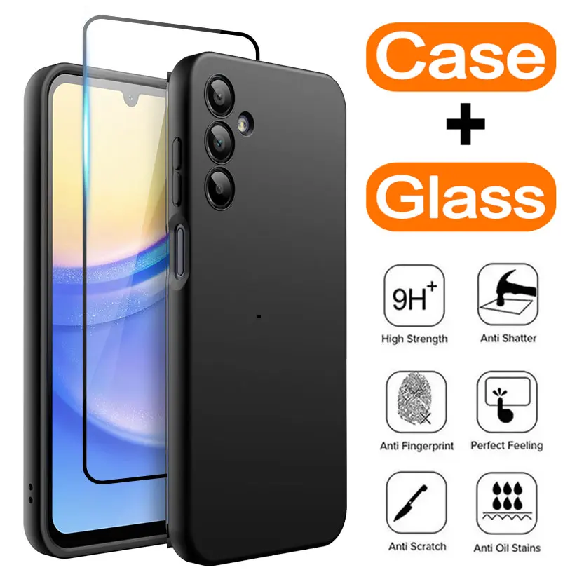 For Samsung Galaxy A31 A51 4G A22 A32 A52 A11 A13 A23 A53 A33 Black Silicone Soft Case Phone Cover With Screen Protector Glass
