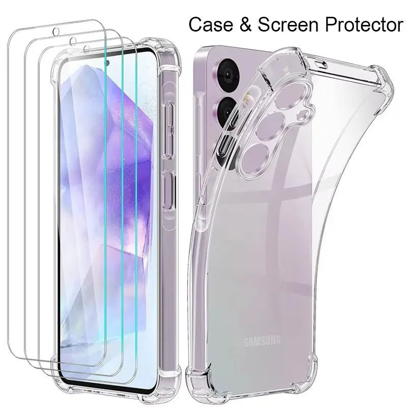 Case with Glass for Samsung A56 A36 A15 A55 A54 A14 A34 A35 A52 Silicone Cover for Samsung Galaxy A55 shockproof Case