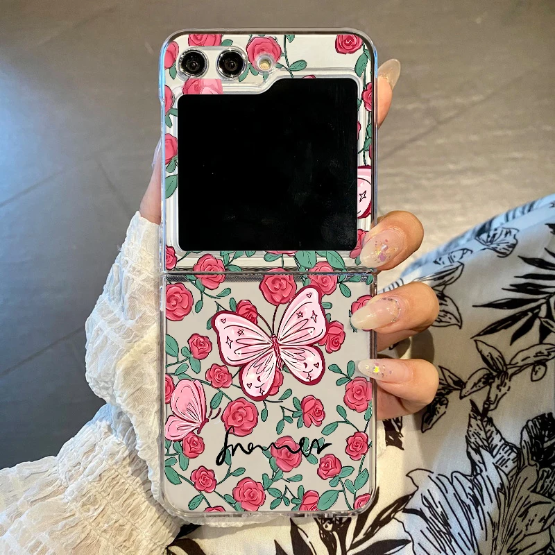 Pink Flowers Print Phone Case For Samsung Galaxy Z Flip7 FE Flip5 Flip6 Clear Folding Hard Cover For Samsung Z Flip 7 6 5 4 3 5G