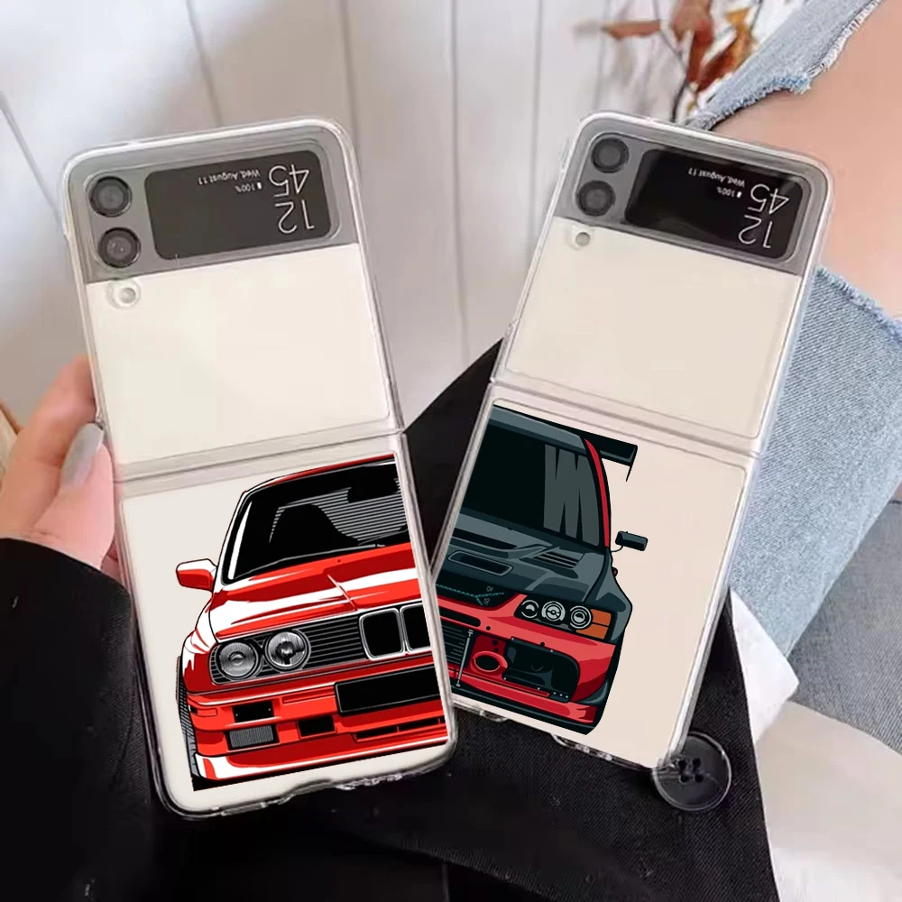 Men Cool Sports Cars Comic Phone Case For Samsung Galaxy Z Flip 6 ZFlip 5 7 Hard Transparent Cover for Samsung ZFlip4 ZFlip3