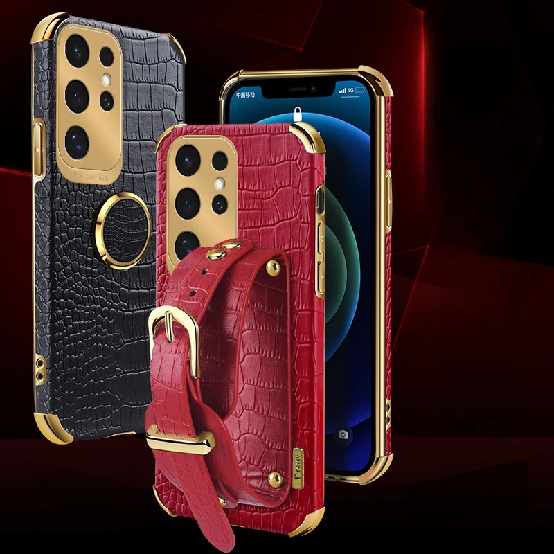Crocodile Pattern Phone Case For Samsung Galaxy S25edge S24 FE S23 S22 S21 Ultra Plus FE Note 20 9 8 Back Cover With Wrist Strap  Read more