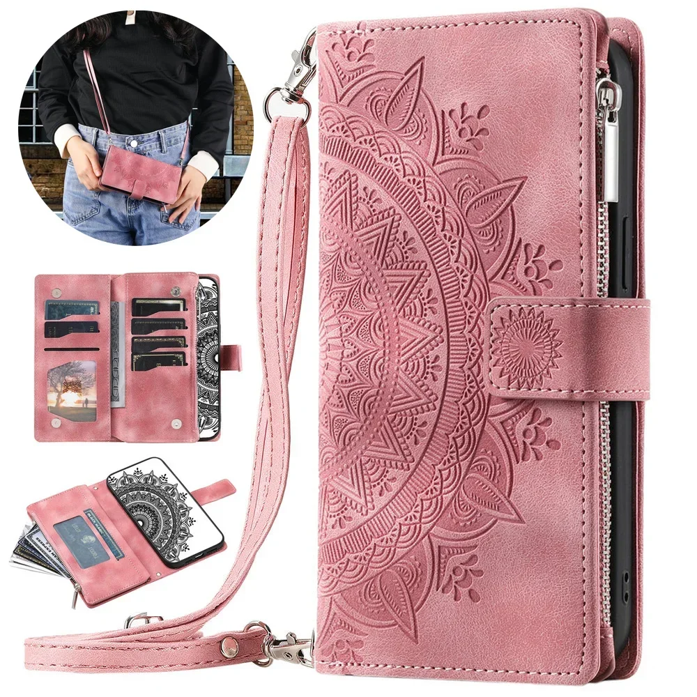 Wallet Case For Samsung A52S A73 A53 A13 4G 5G Luxury Zipper Crossbody Strap Case for Samsung Galaxy A23 A33 A52 A73 Flip Cover