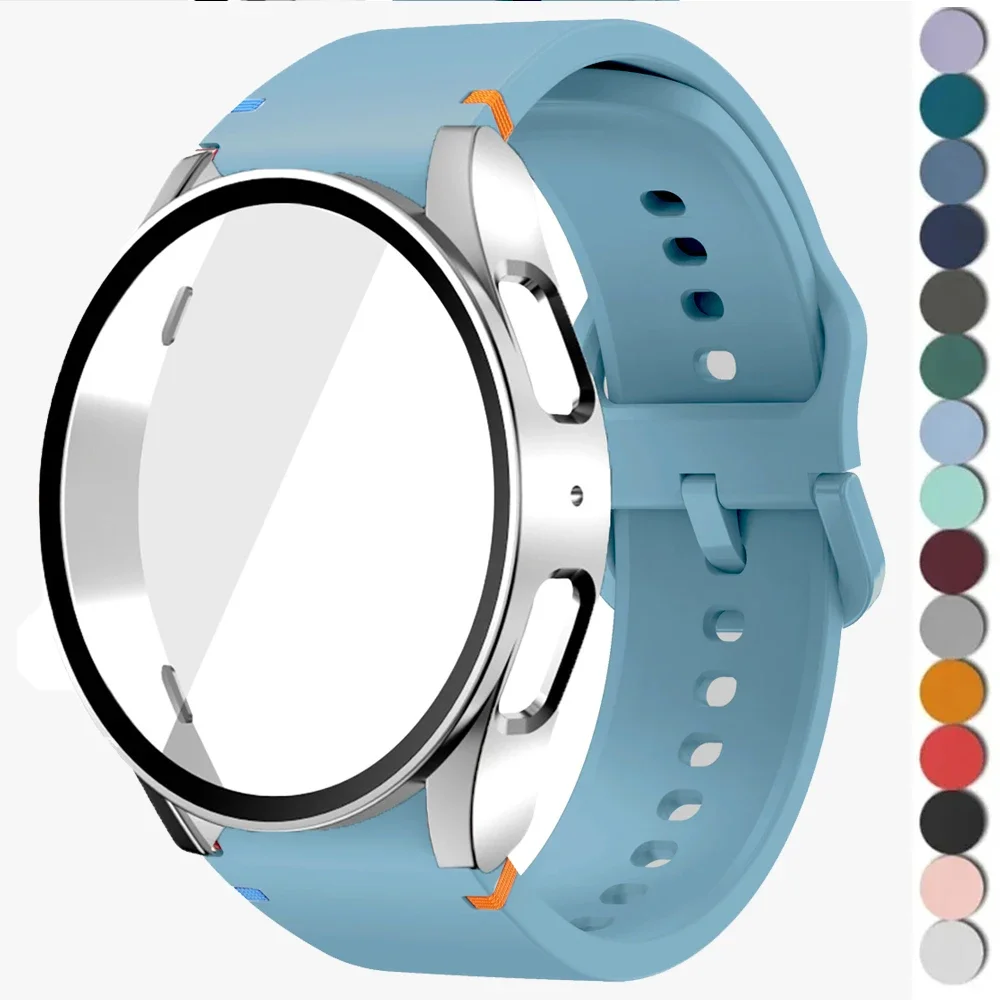 Case+Band for Samsung Galaxy Watch 7 6 5 4 40 44mm Silicone Strap Bracelet PC Protector Cover Bumper Tempered Glass Screen Film