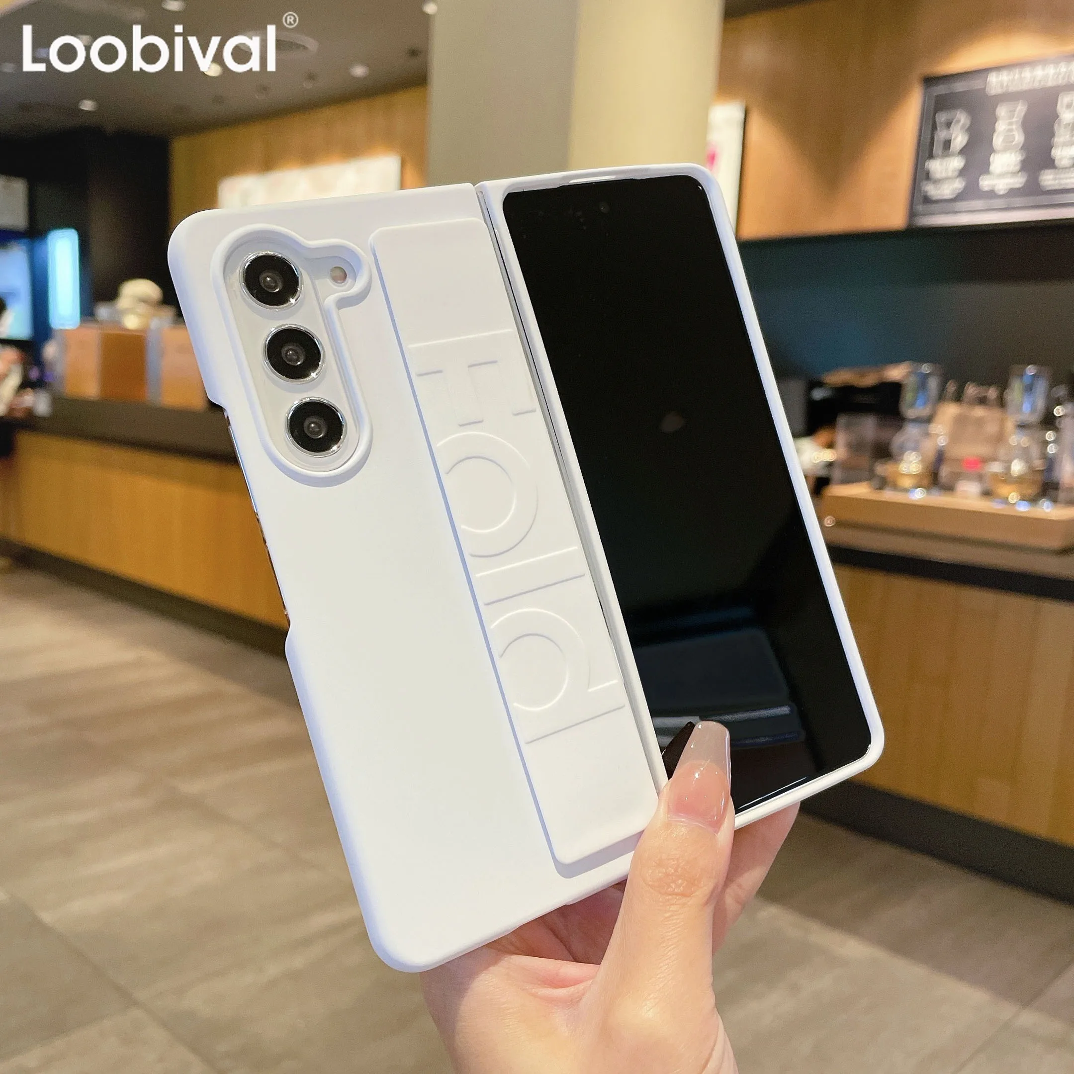 Luxury Soft Silicone Wrist Strap Bracket Phone Case For Samsung Galaxy Z Fold 7 6 5 4 3 Zfold7 Cases Ultra Thin Matte Hard Cover