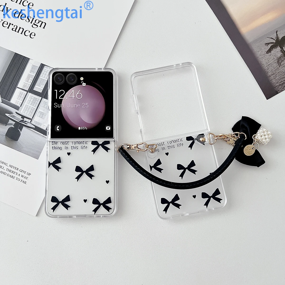 Hard transparent bow pattern hand strap mobile phone case for Samsung Galaxy Z Flip 7 7FE 6 5 4 3 5G