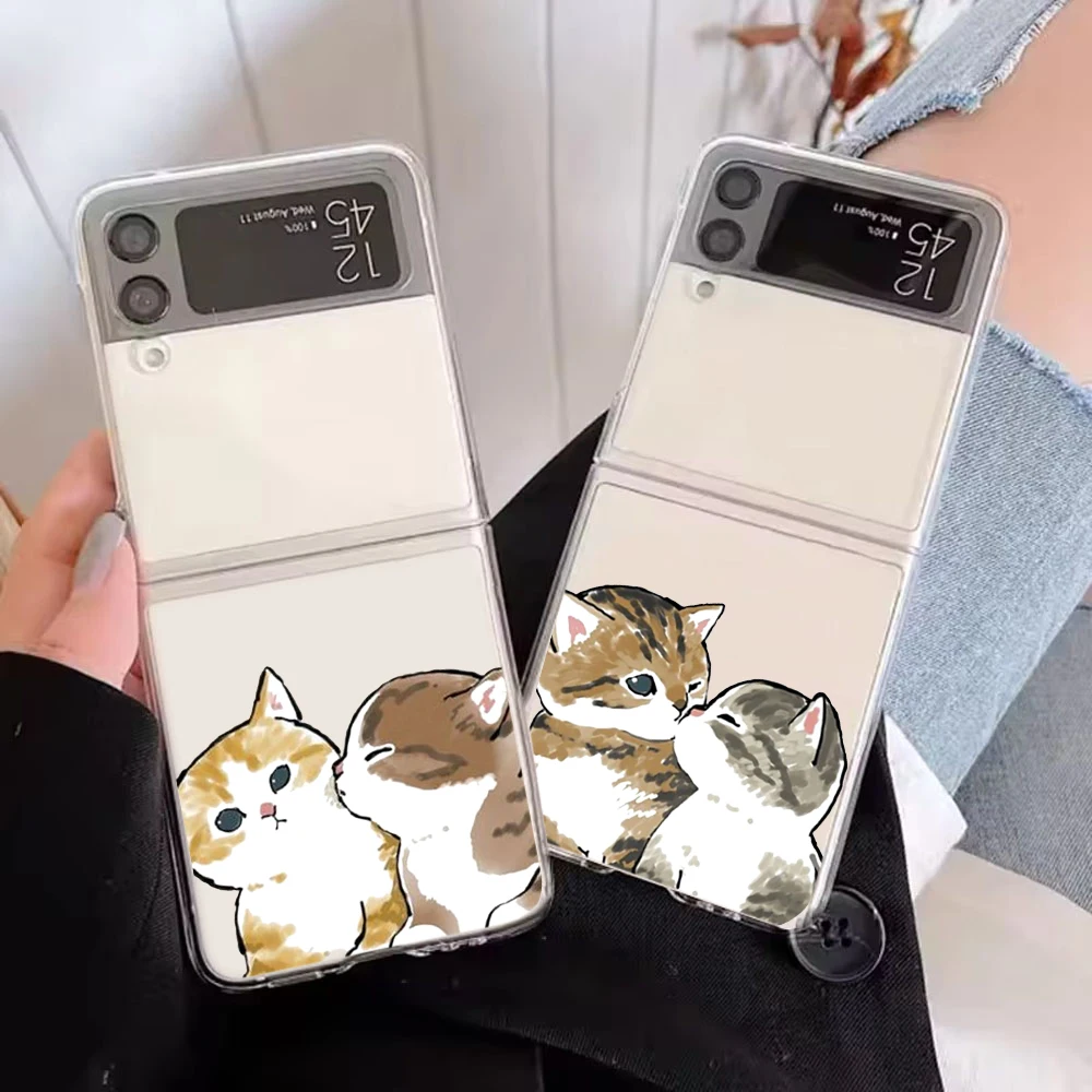 Cute Cartoon Cat Couple Phone Case For Samsung Galaxy Z Flip 6 ZFlip 5 Hard Transparent Cover for Samsung ZFlip 4 ZFlip3 ZFlip7