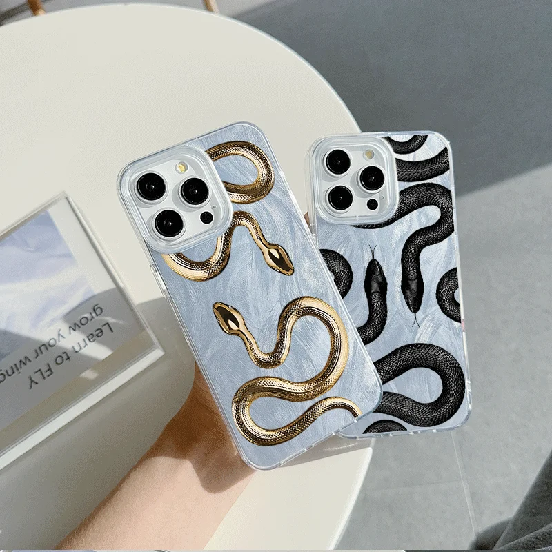 Luxury Black Gold Snake Pattern Phone Case for Samsung Galaxy S25 S21 S22 S23 S24 FE S20 Plus Ultra Feather Texture Hard Covers