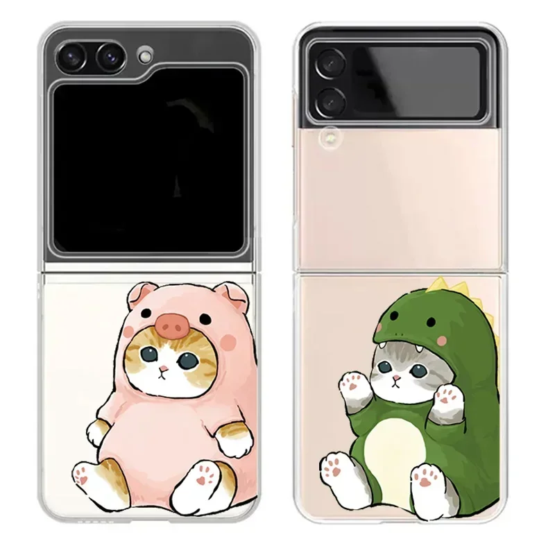Funny Cat Couple Case for Samsung Galaxy Z Flip 5 ZFlip 6 5G Transaprent Clear Paired Cover for Samsung ZFlip 4 ZFlip 3 7 Fundas