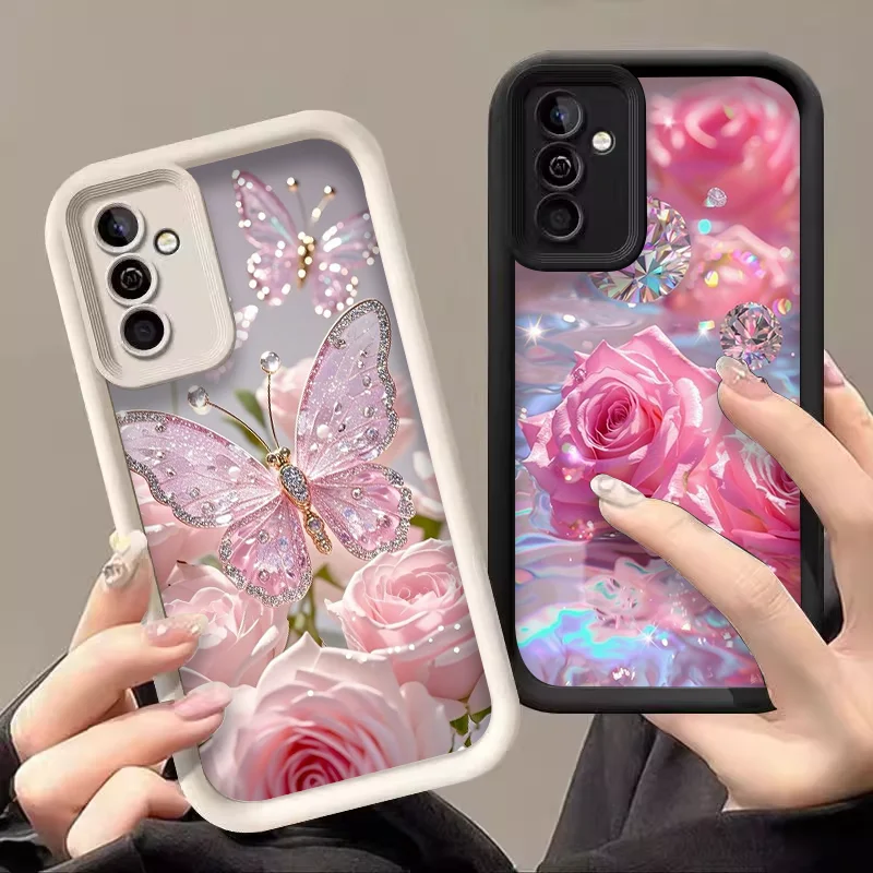 Luxury Romantic Butterfly Flower Pink Rose Phone Case for Samsung Galaxy S25 S24 S23 S22 S21 Ultra Plus FE A16 A14 5G Soft Cover
