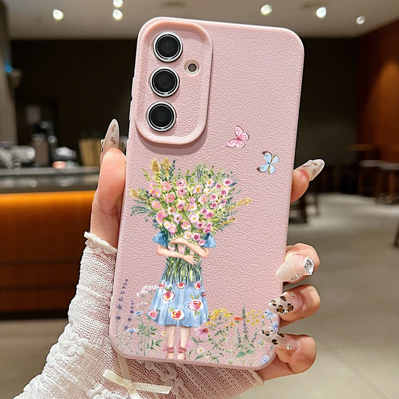 Girl Flower Case For Samsung Galaxy S24 S23 S22 S25 Ultra Edge S21 FE A14 A34 A16 A26 A36 A56 A15 A35 A52 A53 A54 A55 5G Capa