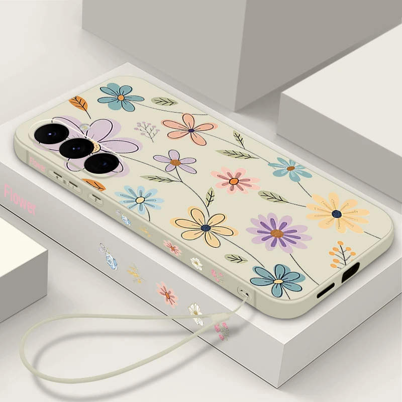 Cartoon Daisies Flowers Lanyard Case For Samsung Galaxy S25 Ultra S24 S23 S22 Plus S21 FE A15 A16 A35 A36 A54 A55 A56 5G Capa  Read more