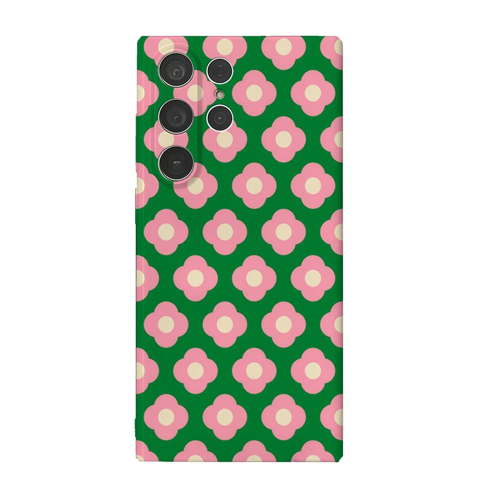 Green Pink Flower Pattern Phone Case for Samsung Galaxy S25 S24 S23 Ultra Plus A35 A160 Glossy HD Hard Cover Film Shell  Read more