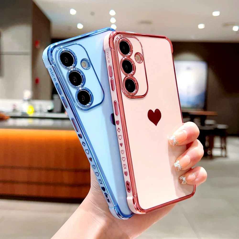 Fashion Love Heart Plating TPU Case for Samsung Galaxy S25 S24 S23 S22 S21 Ultra Plus FE S24FE 5G Shockproof Protective Covers