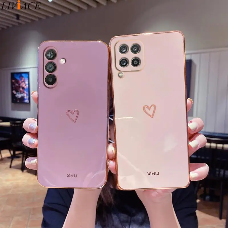 Luxury Plating Love Heart Case For Samsung Galaxy S24 S23 S22 Ultra S21 Plus S20 FE A54 A34 A14 A52 A53 A23 A15 A24 5G Cover  Read more