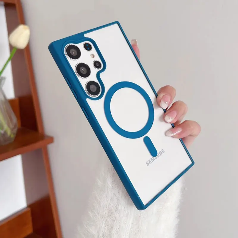 Matte transparent magsafe charging phone case for Samsung Galaxy S22 23 24 Ultra Plus S23 FE magnetic full shockproof hard cover