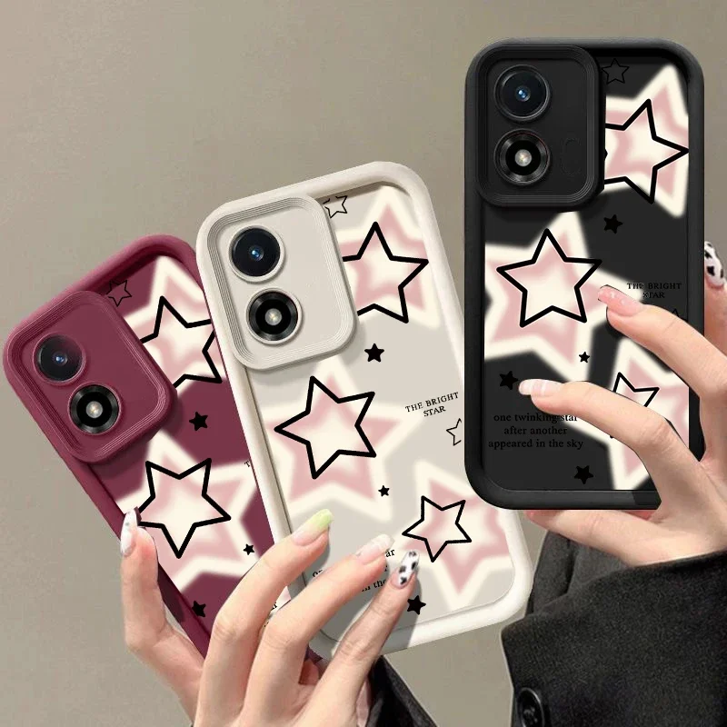 Y2K Pink Stars Phone Case for Motorola Moto G32 G52 G35 G30 G34 G85 G54 E22 G15 G05 E14 E40 E32 Soft Matte Silicone Cover Shell