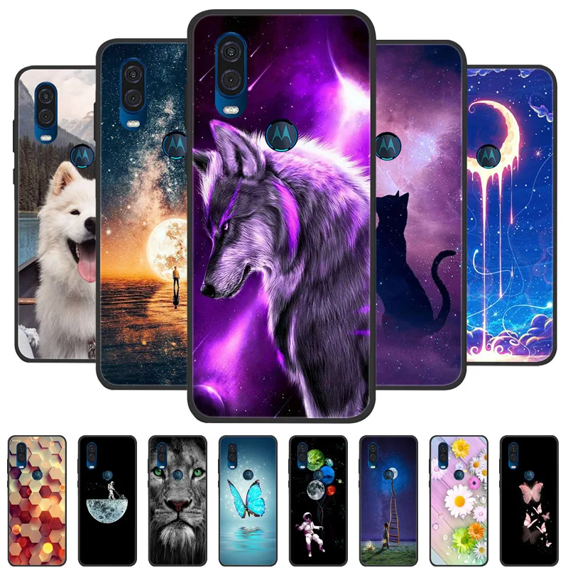 For Motorola One Vision Case Black Cover Lion Wolf Silicone Soft Back Cases For Moto One Vision Phone Case Protective Shell