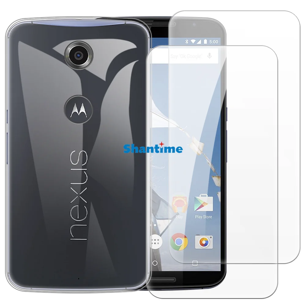 Soft Case + 2 Pack Tempered Glass Screen Protectors for Google Nexus 6, Motorola Nexus 6, Shamu Full-Body Protection