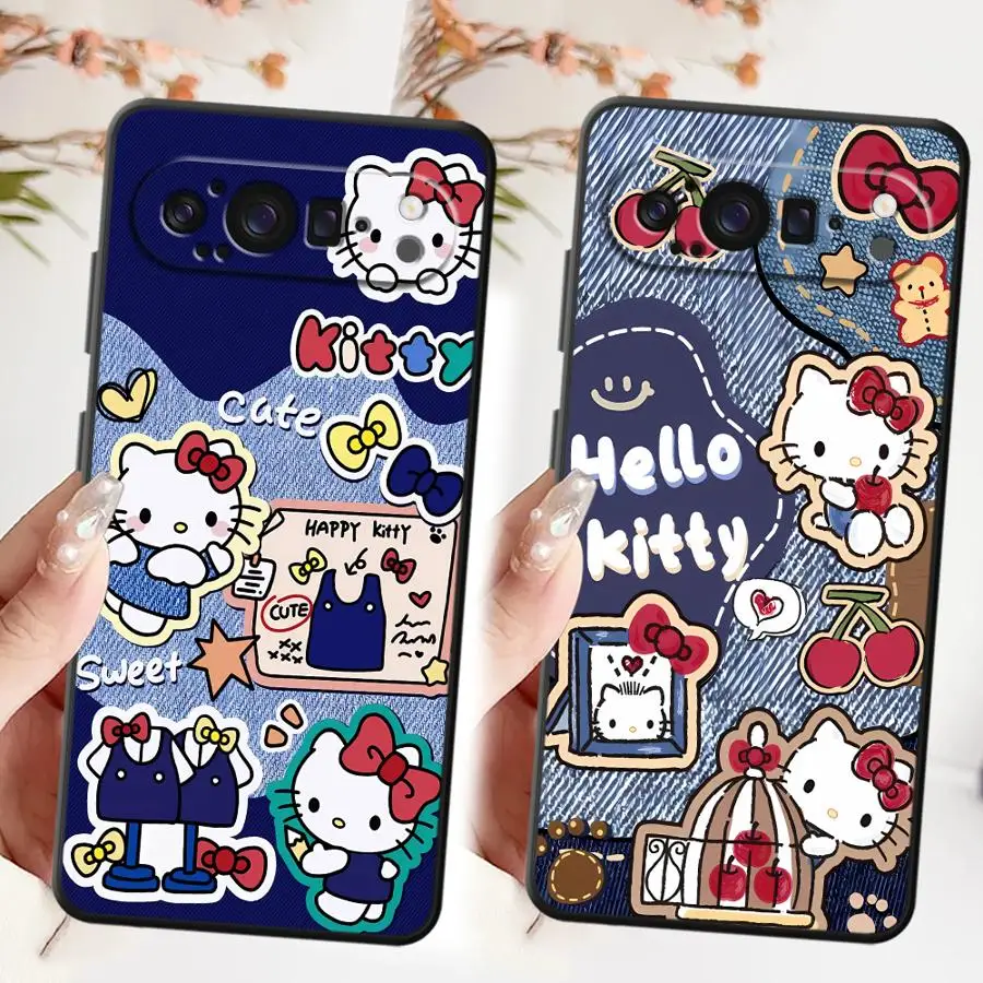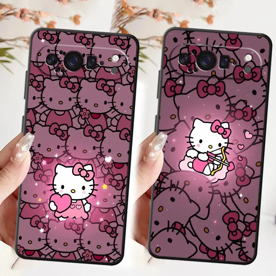 Sanrio Hello Kitty Cute Black Soft Shell Case for Google Pixel 9a 7a 9 Pro XL 6a 7 Pro 8 Pro 8a 6 Pro