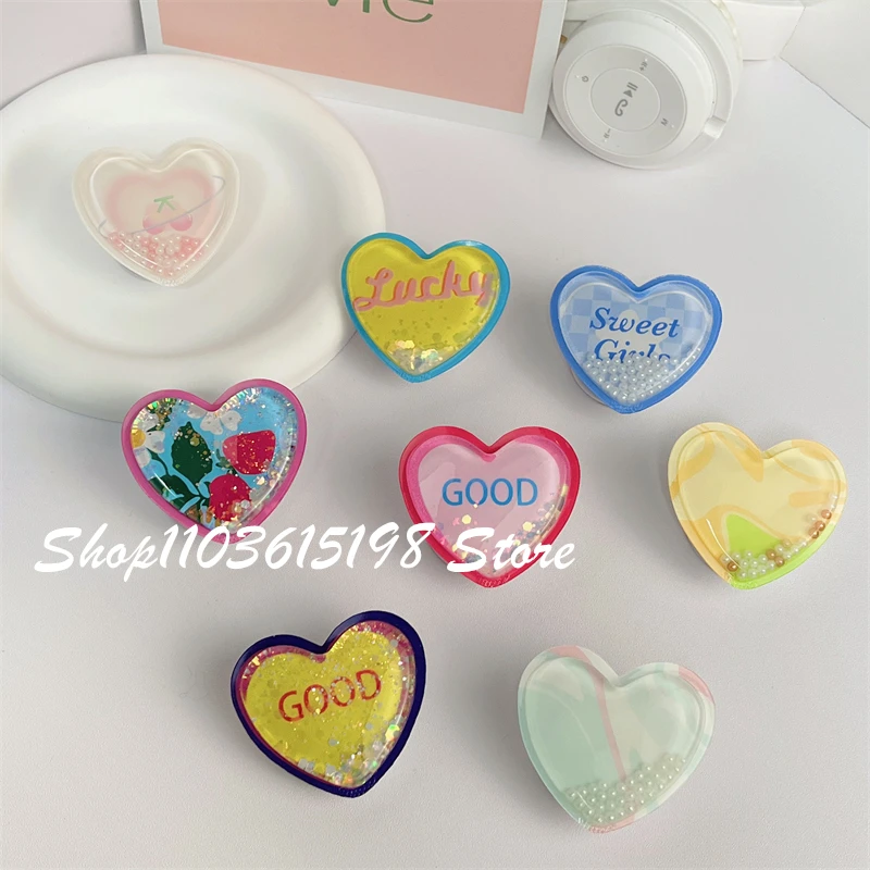 INS Cute Love Heart Grip Tok Phone Holder Liquid Quicksands Glitter Gripto Stand For Phone Universal Accessories Finger Bracket