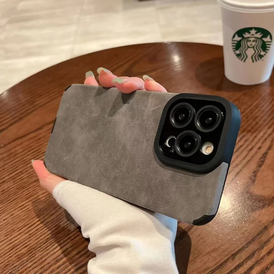 Luxury Matte Leather Phone Case For iPhone 16 15 14 13 12 11 Pro Max Plus Lens Protection Shockproof Silicone Soft Back Cover