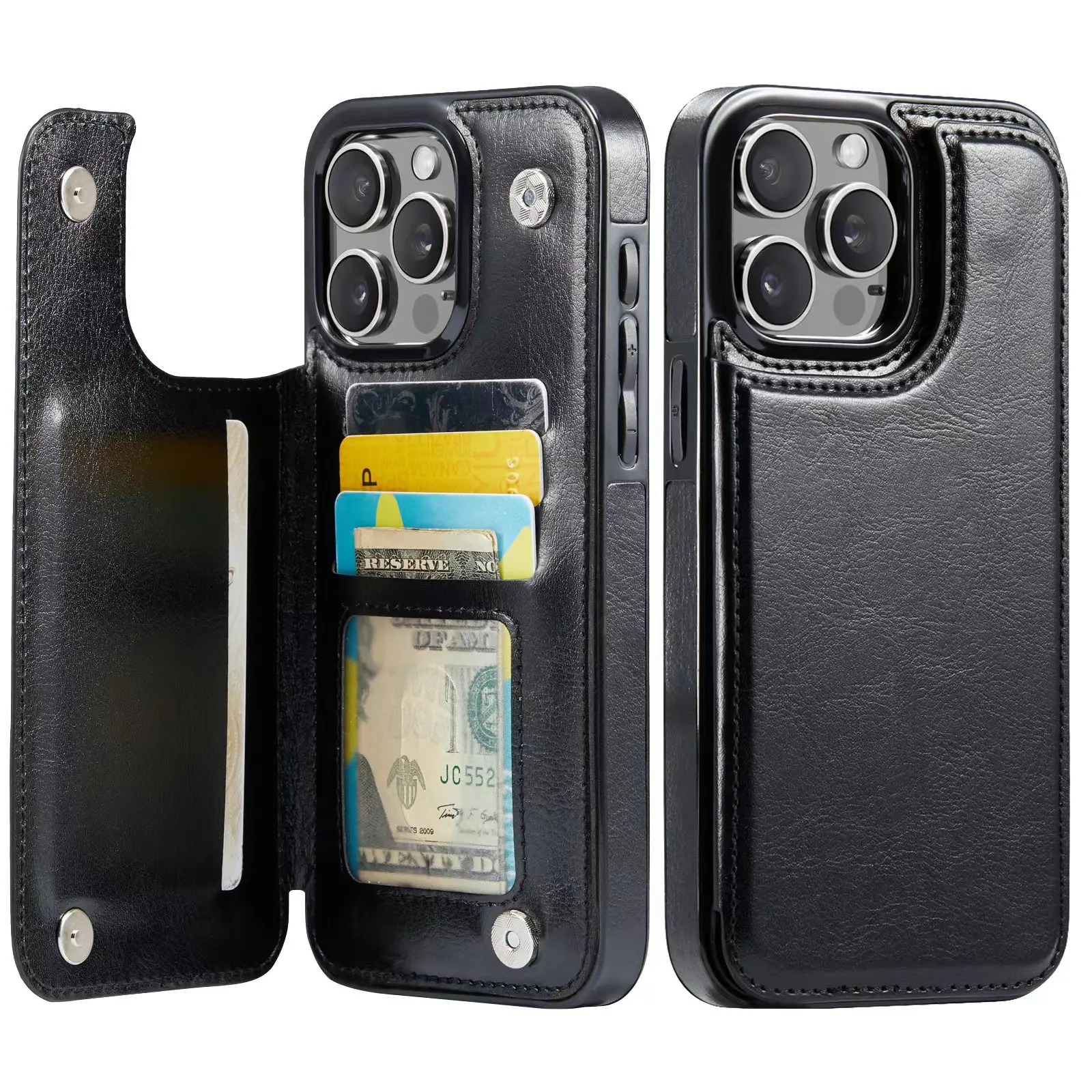 For iPhone 16 15 14 Plus 13 12 Mini 11 Pro Max PU Leather Case Kickstand Card Holder, Double Magnetic Clasp and Durable Shockpro