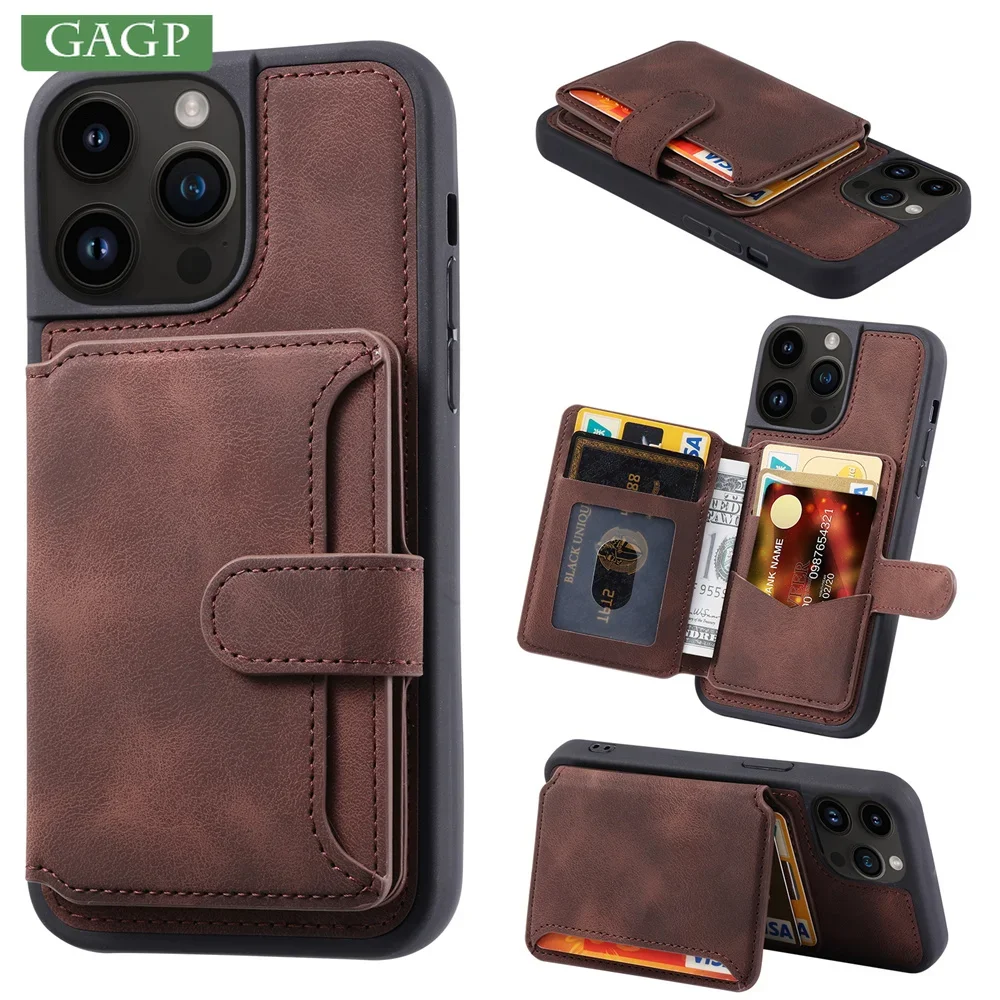 Fashion Leather Case for iPhone 16 15 14 13 12 11 17 Pro Max Plus Protect Shockproof Card Holder Cover for iPhone 17 air 16 Pro