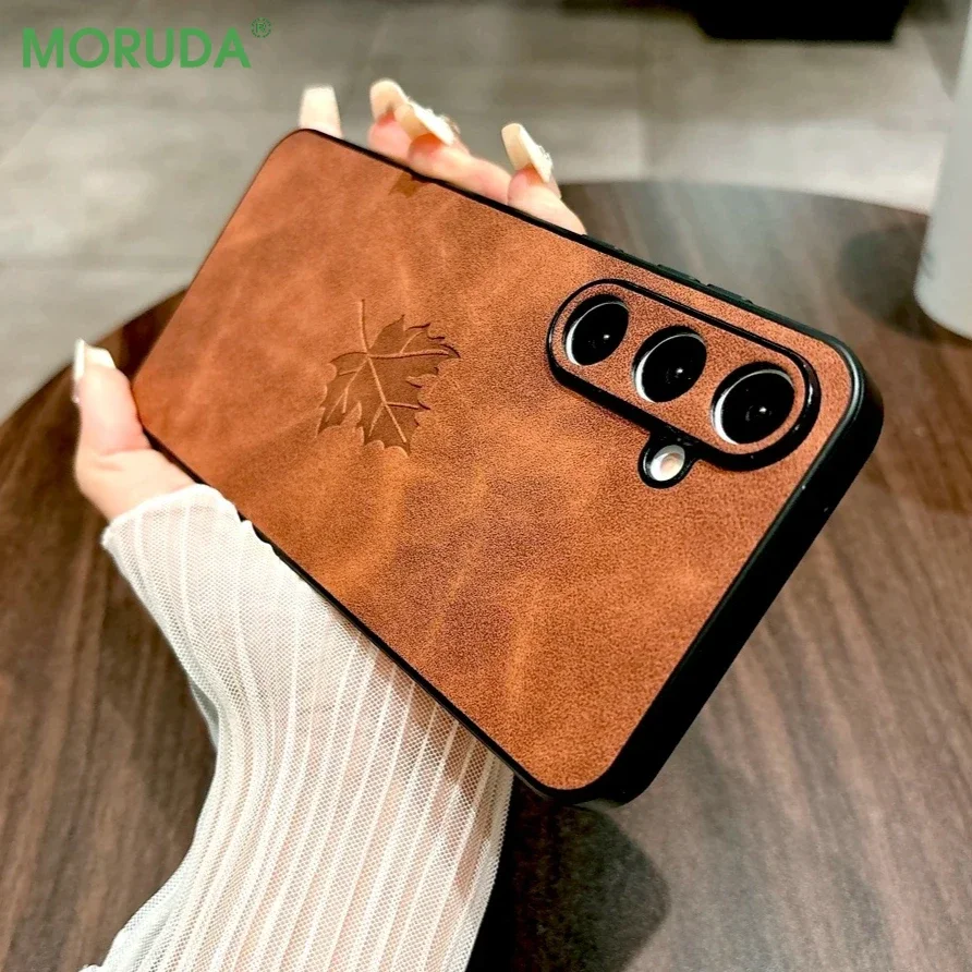 Retro Maple Leaf Leather Case for Samsung Galaxy S25 S24 S23 S22 S21 Ultra Plus FE A55 A54 A53 A52 A34 A35 A15 A25 Slim Cover