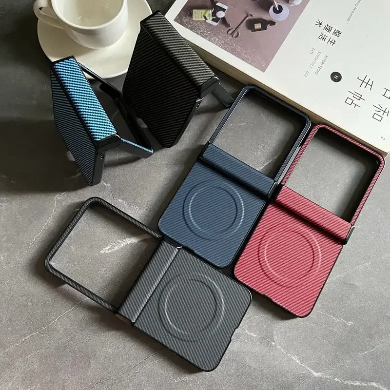 Luxury Magnetic Wireless Charge Hinge Cases For Motorola Razr 60 50 Ultra For Magsafe Carbon Fiber Leather Texture Hard PC Cover