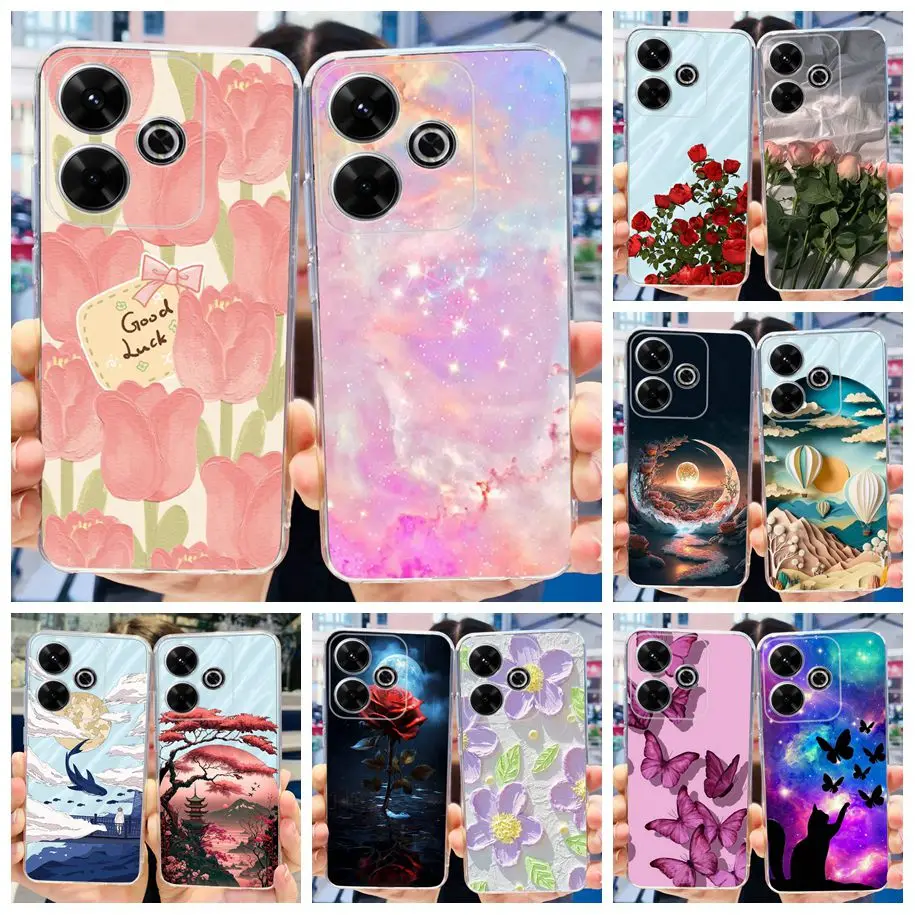 For Cover Xiaomi Redmi 13 Phone Case TPU Soft Silicone Fashion Flower Clear Funda For Redmi 13 4G 2024 Bumper Redmi13 Back Cover
