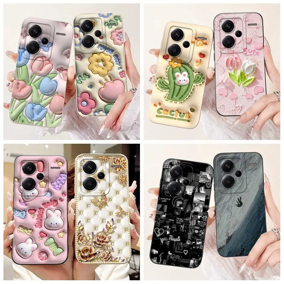 For Xiaomi Redmi Note 13 Pro Plus 5G Case New Fashion Flower Soft Liquid Silicone Shockproof Cover For Redmi Note 13 Pro+ Bumper