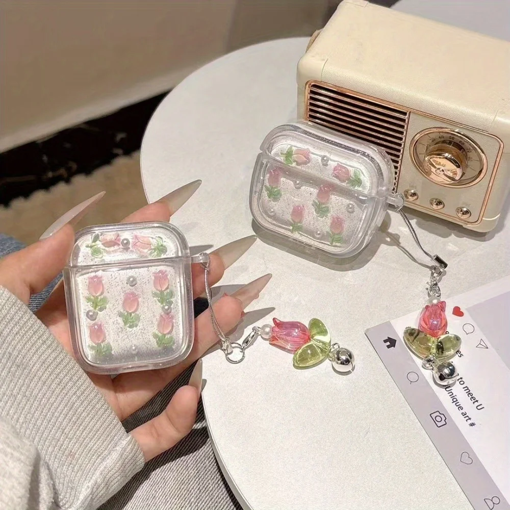 [TPY 4B41] Pink tulip is suitable for AirPods pro2/3/4 protective case is suitable for Apple Bluetooth headset case second