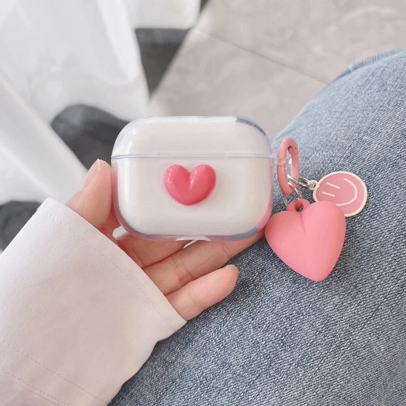 Ins Pink Clear Heart Love Keychain Case For Apple AirPods 4 1 3 Pro 2 Cute Cases Soft TPU Bluetooth Headset Cover For AirPod new