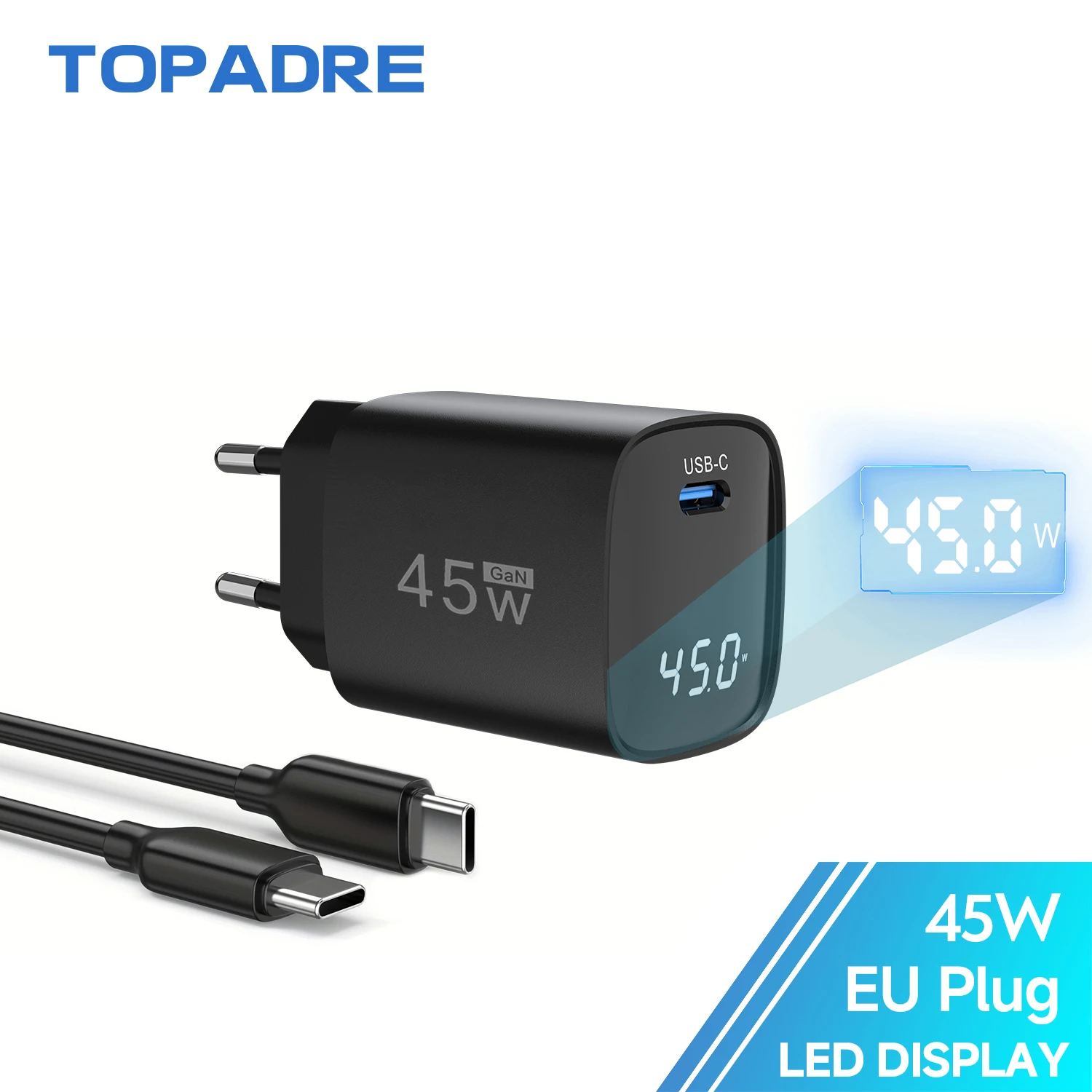 45W USB C Fast Charger with LED Display, Dual Port Fast Charging Charger for iPhone Ipad Sumsamg series, US EU UK Plug