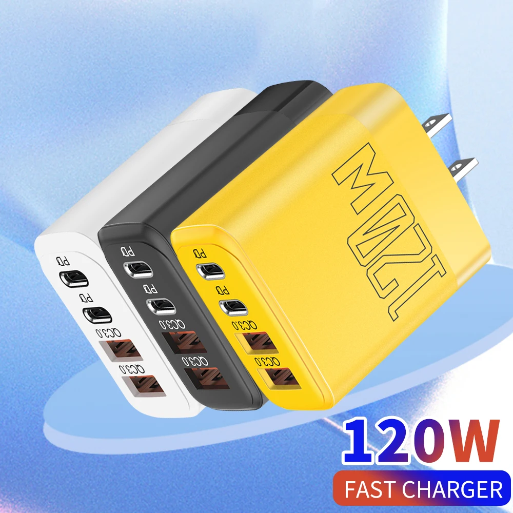 120W 4 Port USB Type C PD Fast Charger Quick Charge High Speed Charger Mobile Phone Wall Adapter for iPhone 17 Samsung S24 Xiaom