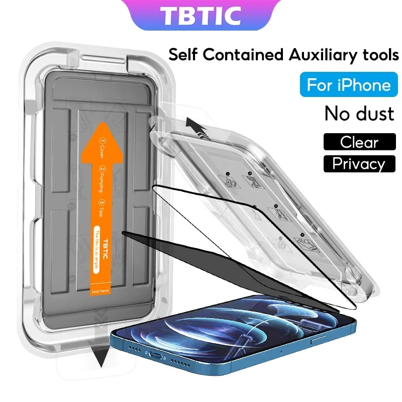 TBTIC Screen Protector For IPhone 16 15 14Plus 13 12 11 ProMax XXs XR Tempered Glass HD Privacy Easy Install With Auto Alignment