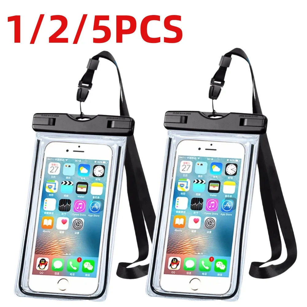 5/2/1PCS Universal Waterproof Phone Pouch Cellphone Dry Bag Case Underwater Phone Protector PV Cover for Kayaking, Beach fishing