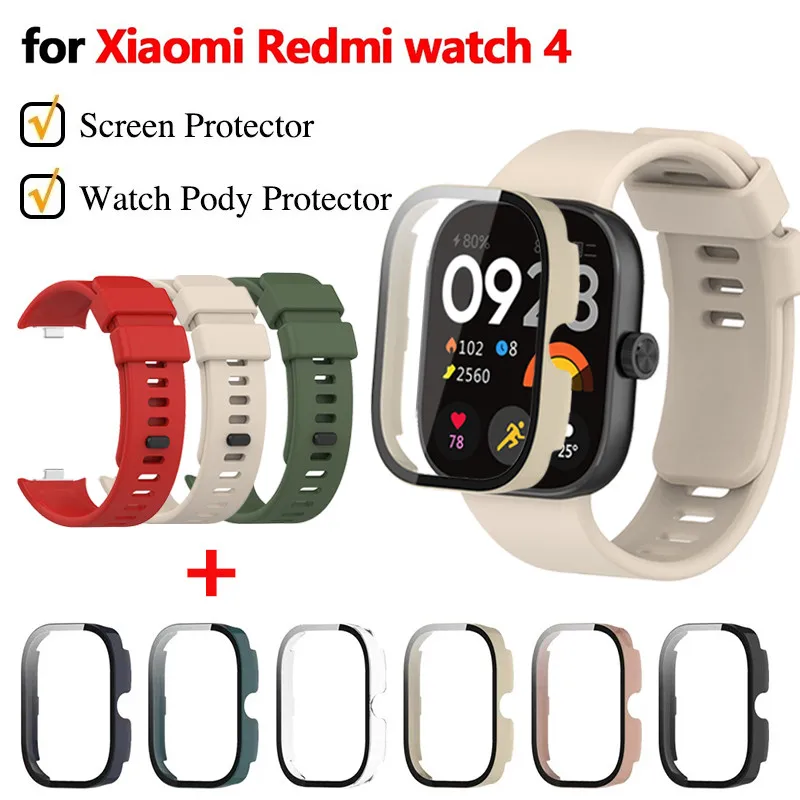 9D Glass Case Strap For Redmi Watch 4 PC Hard Cover Screen Protector Watchband Bracelet for Xiaomi Redmi Watch4 Accessorie