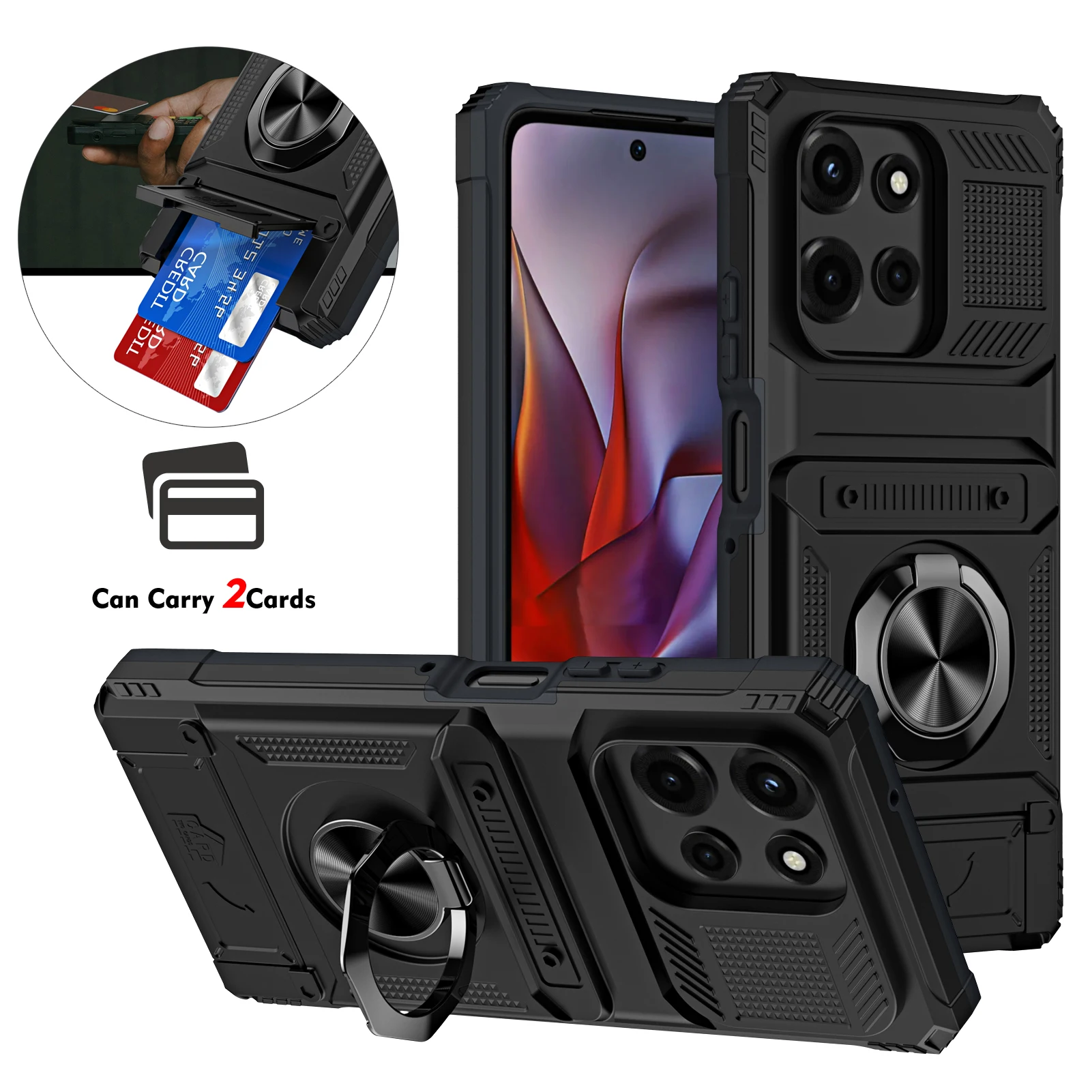 Fit Moto G 5G 2025 Phone Card Case, Tough Kickstand Shockproof Wallet Case with Card Holder for Motorola G 2025 Phone Cover