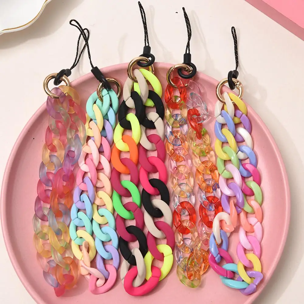 Wholsale Colorful Acrylic Charm Phone Chain Lanyard For Women Mobile Telephone Straps Anti-Lost Phone Jewelry Accessories