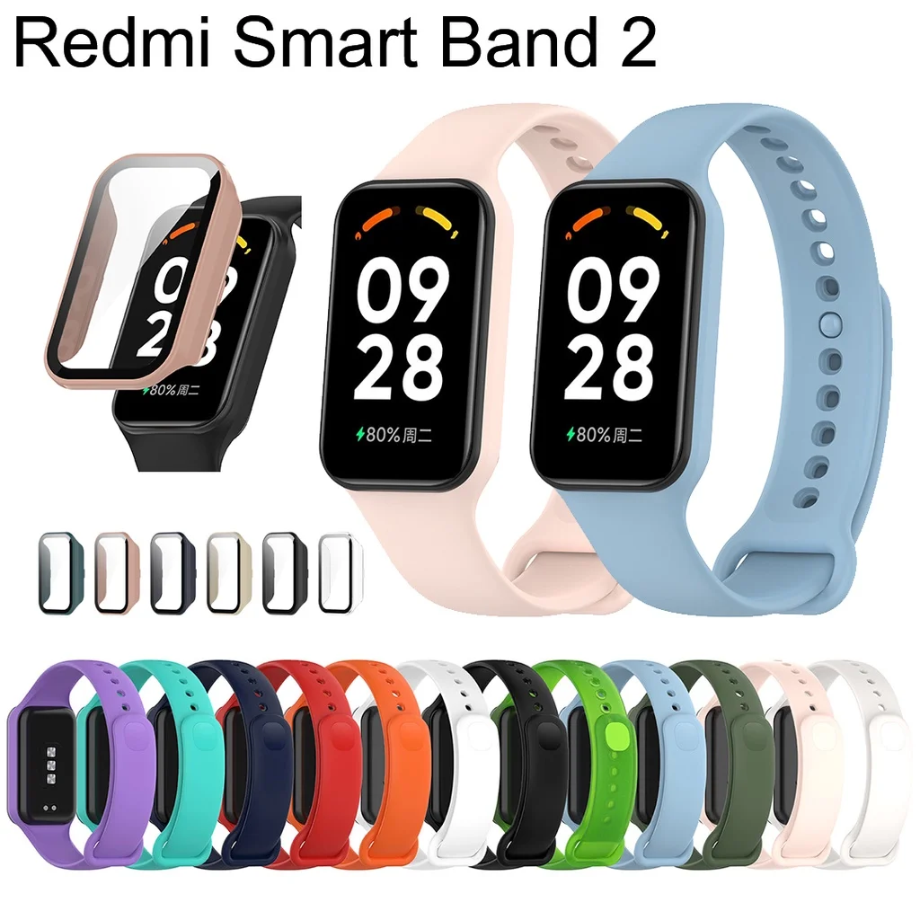 Silicone Band Strap and Case for Redmi Smart Band 2 Tempered Glass Screen Protector Cover Casing Accessories for Redmi Band2