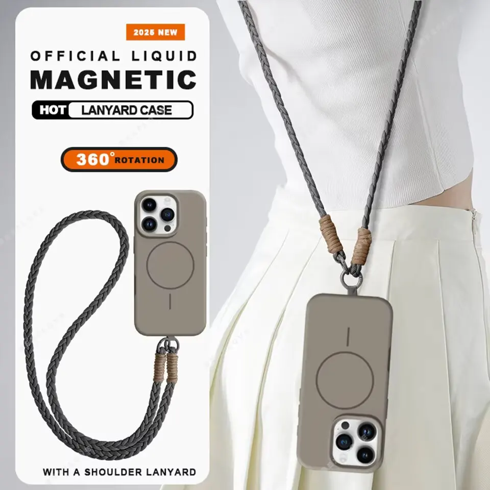 Long Crossbody Strap Magnetic Liquid Silicone Phone Case For iPhone 15 14 16 Plus 11 12 13 16 Pro Max Lanyard Protect Soft Cover