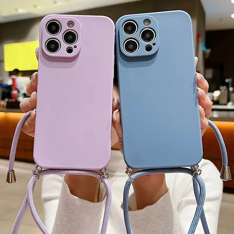 Crossbody Necklace Strap Silicone Case For iPhone Air 17 16 15 Pro Max 14 13 Pro 16e Soft Shockproof Hanging Rope Phone Cover